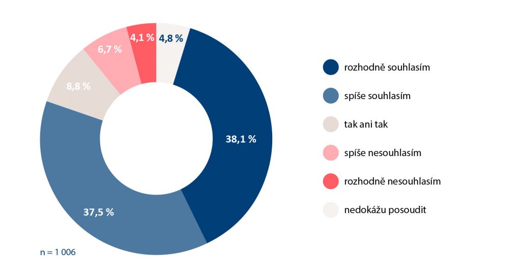 „Instalování solárních panelů na střechy domů pro výrobu elektřiny má mezi obyvateli Prahy velkou podporu: souhlasí s ní 76 % veřejnosti. Pouze 11 % nesouhlasí, zbývající nemají na tuto otázku jasný názor nebo na ni nedokážou odpovědět.“